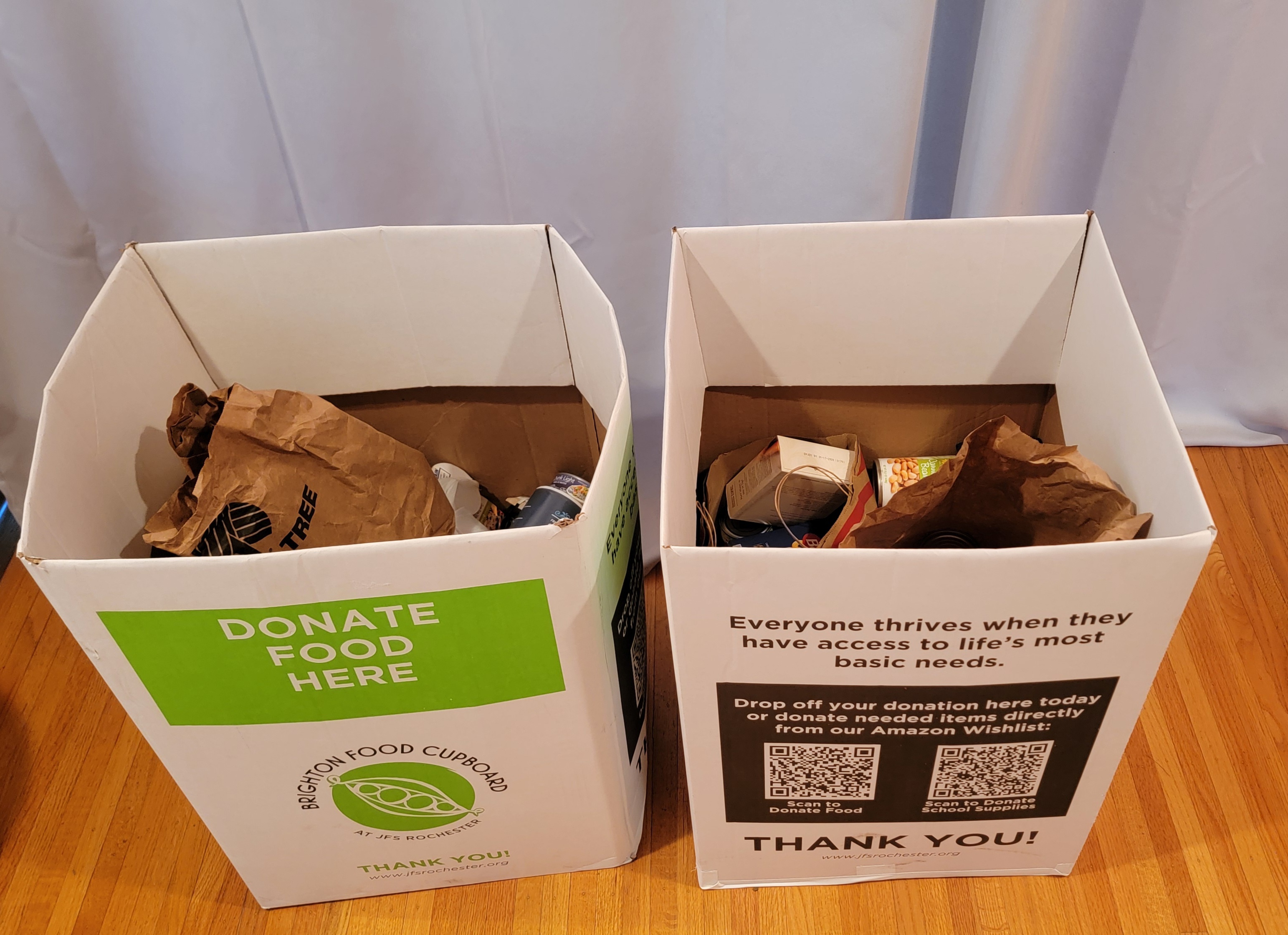 We are thrilled to share that we raised $2002.54 and filled one and a half donation bins with goods for the Brighton Food Cupboard !